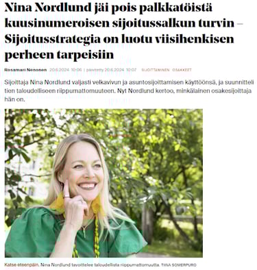Olen Nina Nordlund, talousvalmentaja apunasi talouden hallinnassa ja sijoittamisessa.